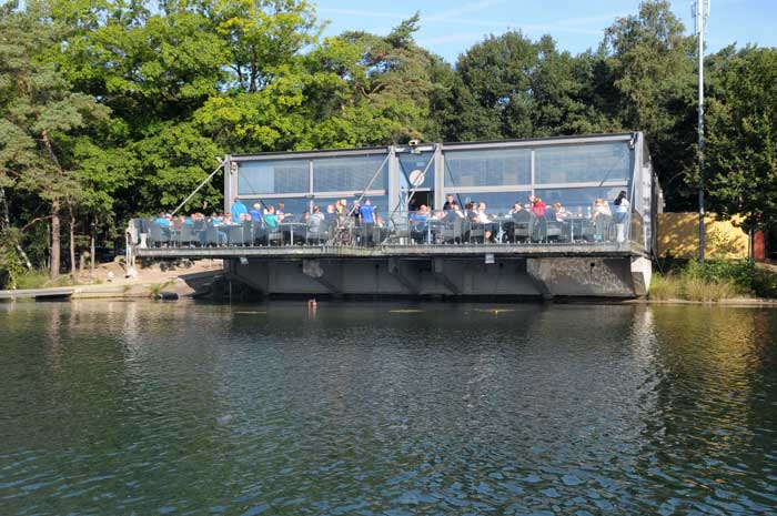 | Duikercentrum met gedeeltelijke overkraging over het water. |